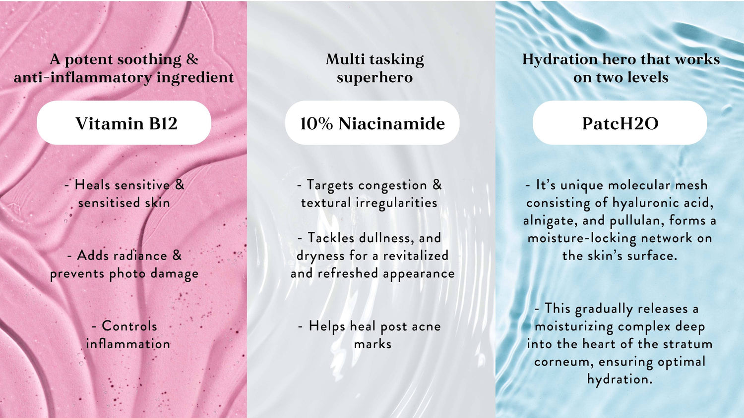 Vitamin B12: Skin calming and anti inflammatory ingredient.