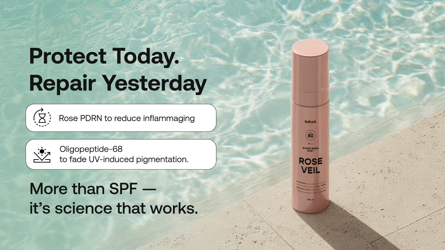 Infused with Rose PDRN, Oligopeptide-68, and advanced UV filters, it shields against sun damage, repairs past exposure, and keeps your skin calm, hydrated, and radiant.